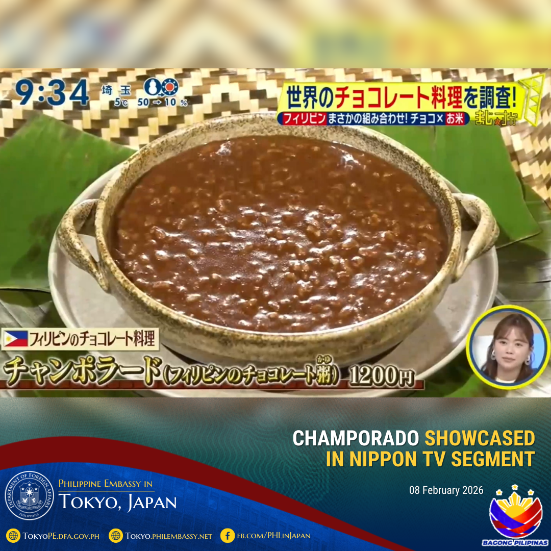 The taste of champorado may remind Japanese audiences of ohagi or Japanese sweet rice balls with red bean paste. Such culinary similarities demonstrate the endless creative possibilities of interweaving Filipino and Japanese food culture and traditions, as the Philippines and Japan celebrate the 70th anniversary of the normalization of diplomatic relations in 2026.