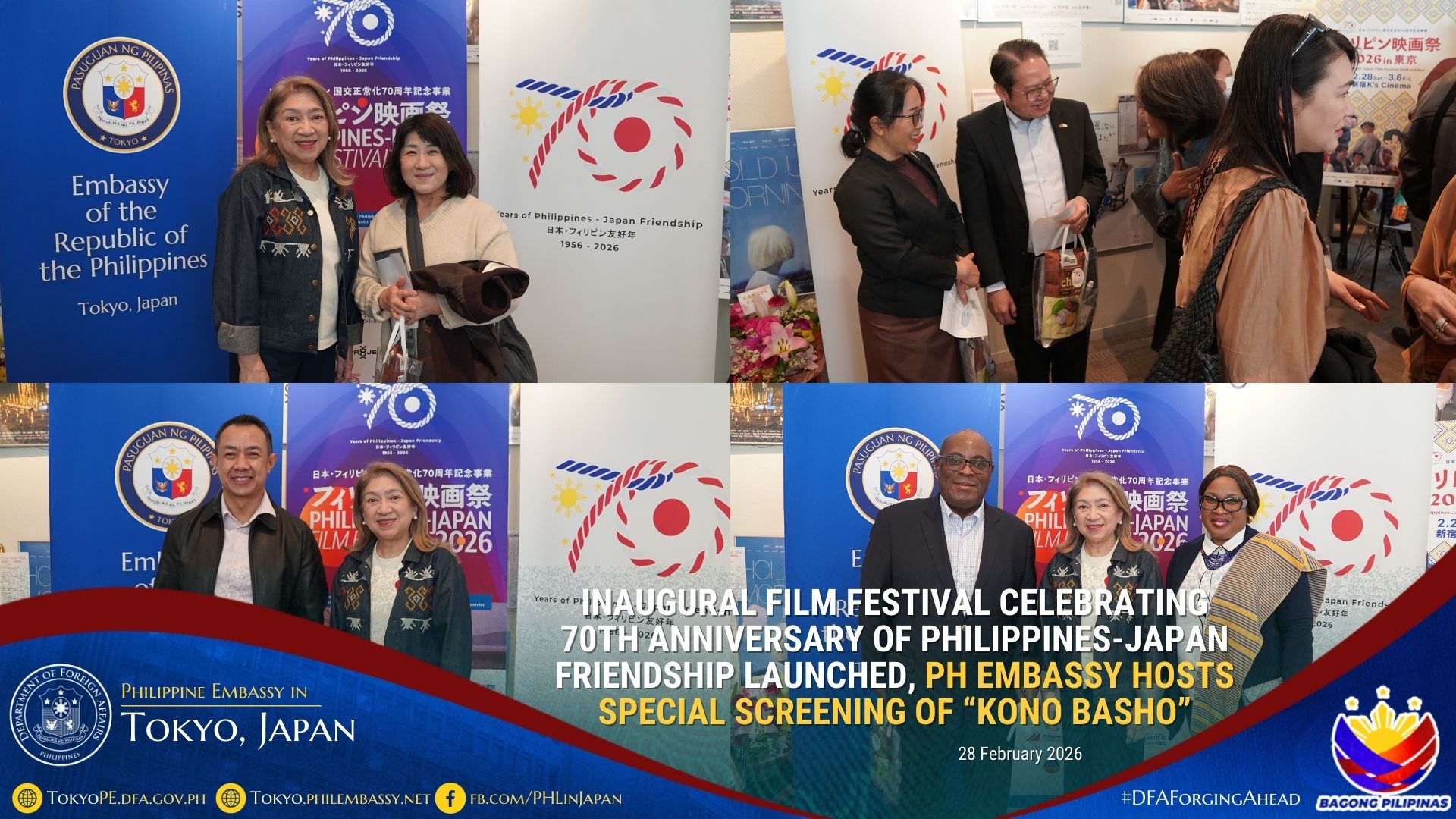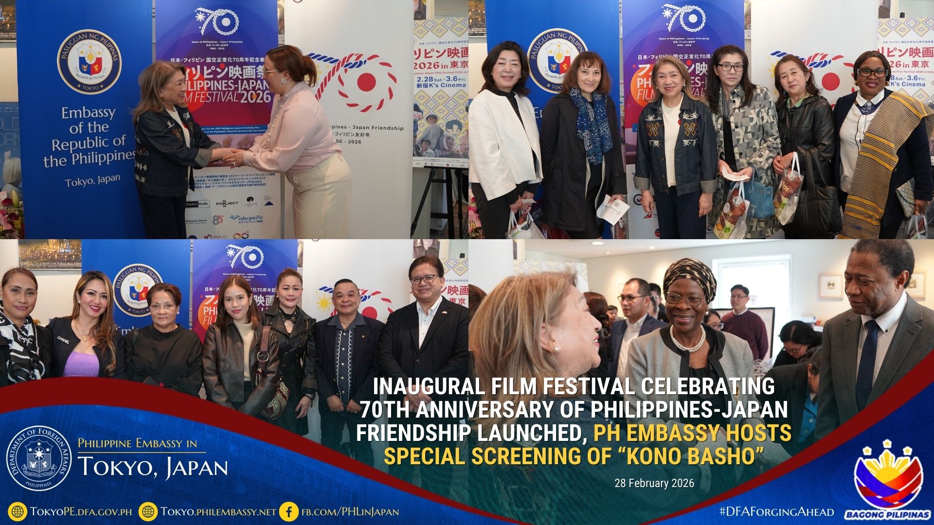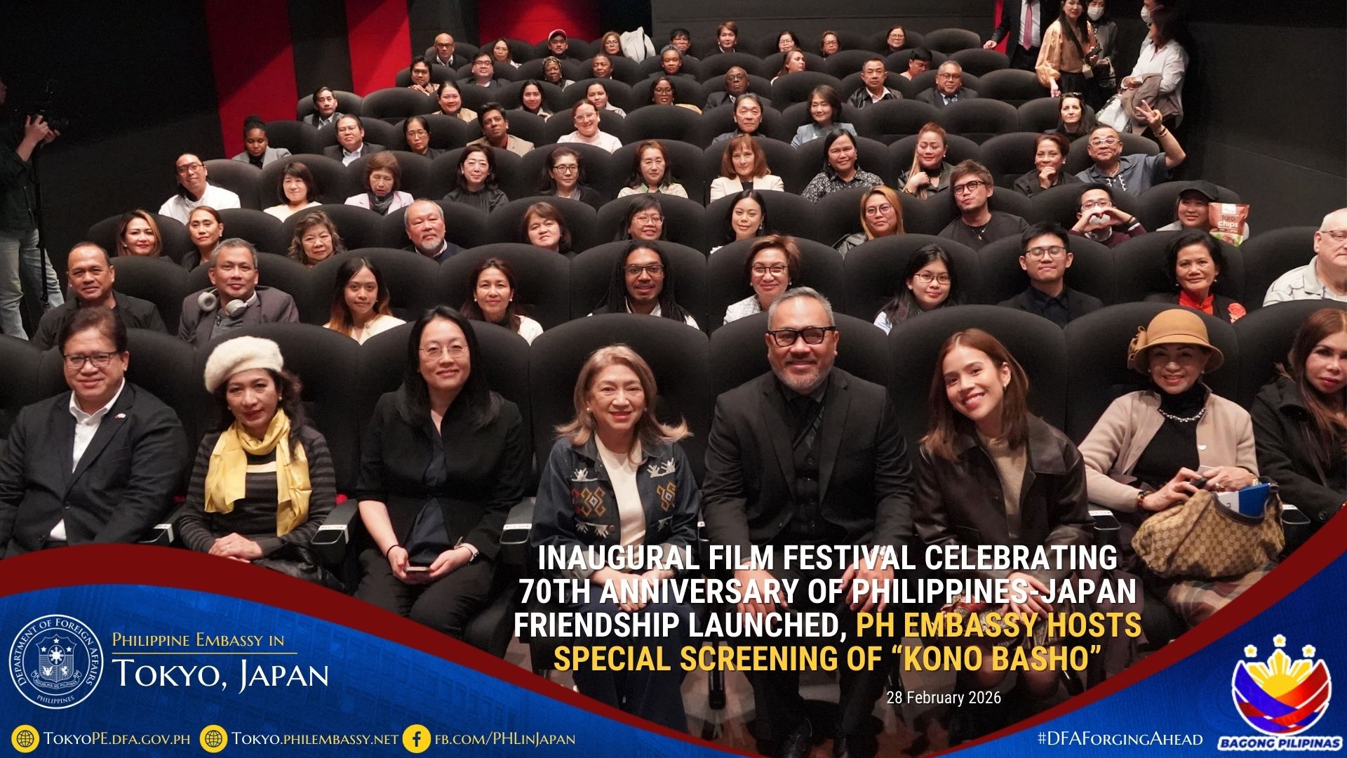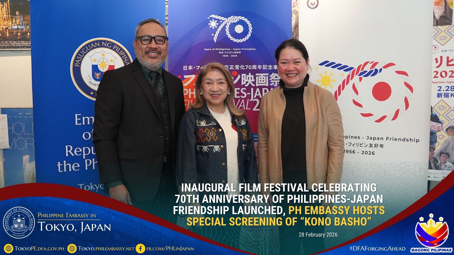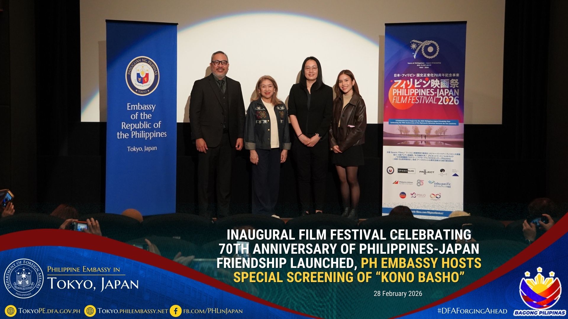 The Philippine Embassy in Japan partnered with the Philippine Film Festival Executive Committee, led by Ms. Masumi Soga of Spanic Films LLC, for the Festival and hosted a special screening of the Filipino–Japanese collaboration, Kono Basho (“This Place”), also on 28 February 2026.