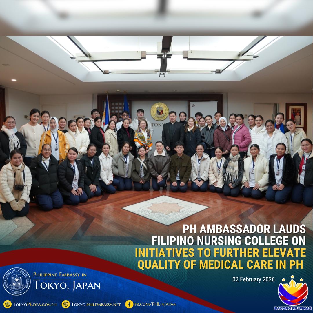 2026年2月10日東京-2月2日ミレーン・ガルシア=アルバノ駐日フィリピン大使は、大使館を表敬訪問したザビエル大学アテネオ・デ・カガヤン校看護学部が推進する取り組みに対し、謝意を表明しました。