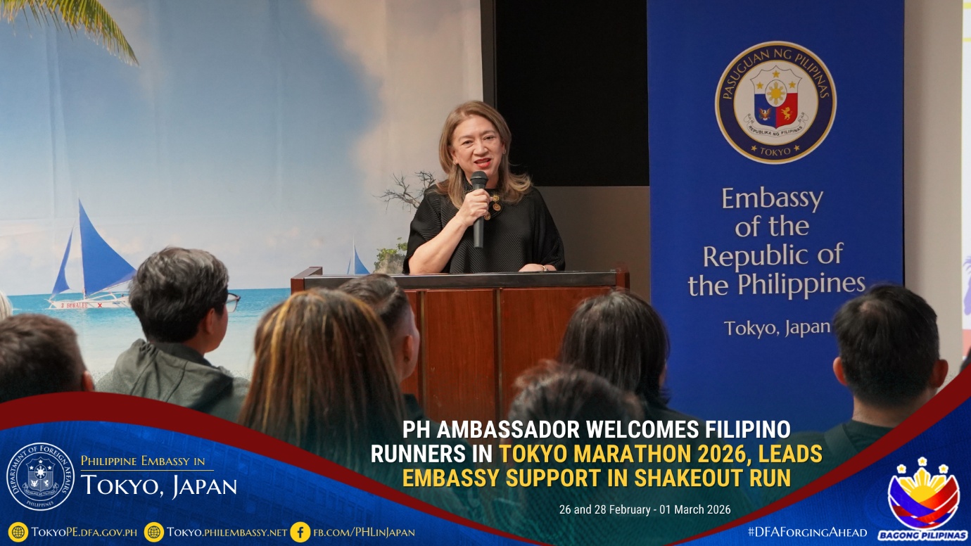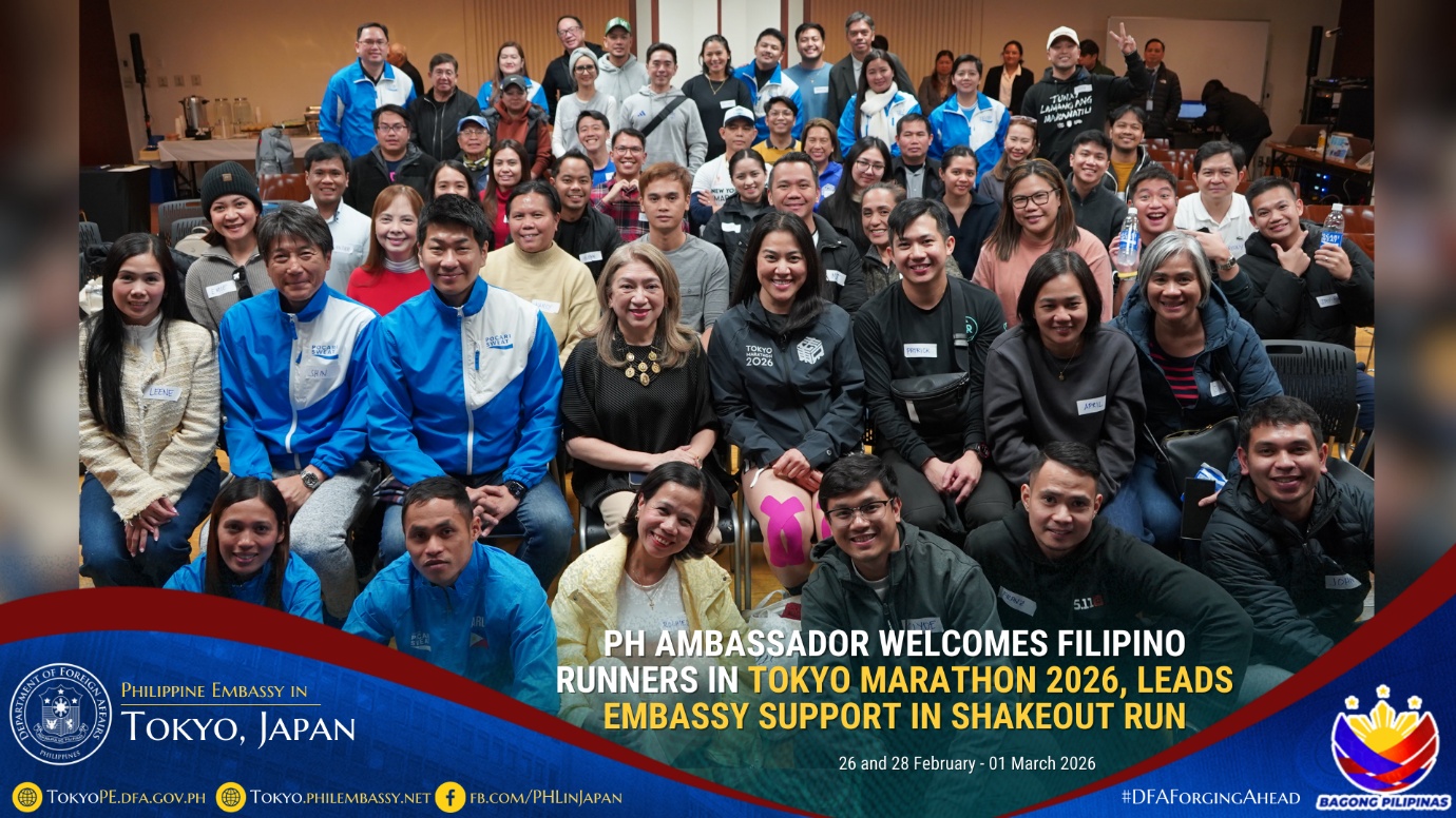 在日フィリピン大使館ミレーン・ガルシア=アルバノ駐日フィリピン大使は、2026年2月26日、フィリピン大使館多目的ホールにて、東京マラソン2026に参加するフィリピン人ランナーのための交流会を主催しました。これは4年連続での開催となります。