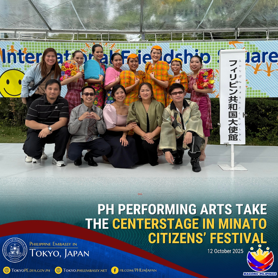 2025年10月16日東京―フィリピン大使館は、2025年10月12日、第44回みなと区民まつりに参加し、芝公園「国際友好広場」のステージにて日本在住のフィリピン人歌唱グループSynchoによるフィリピンの歌と、東京外国語大学(TUFS)フィリピン民族舞踊団による華やかな舞踊を披露しました。