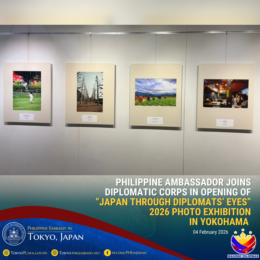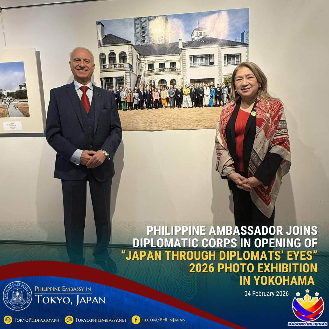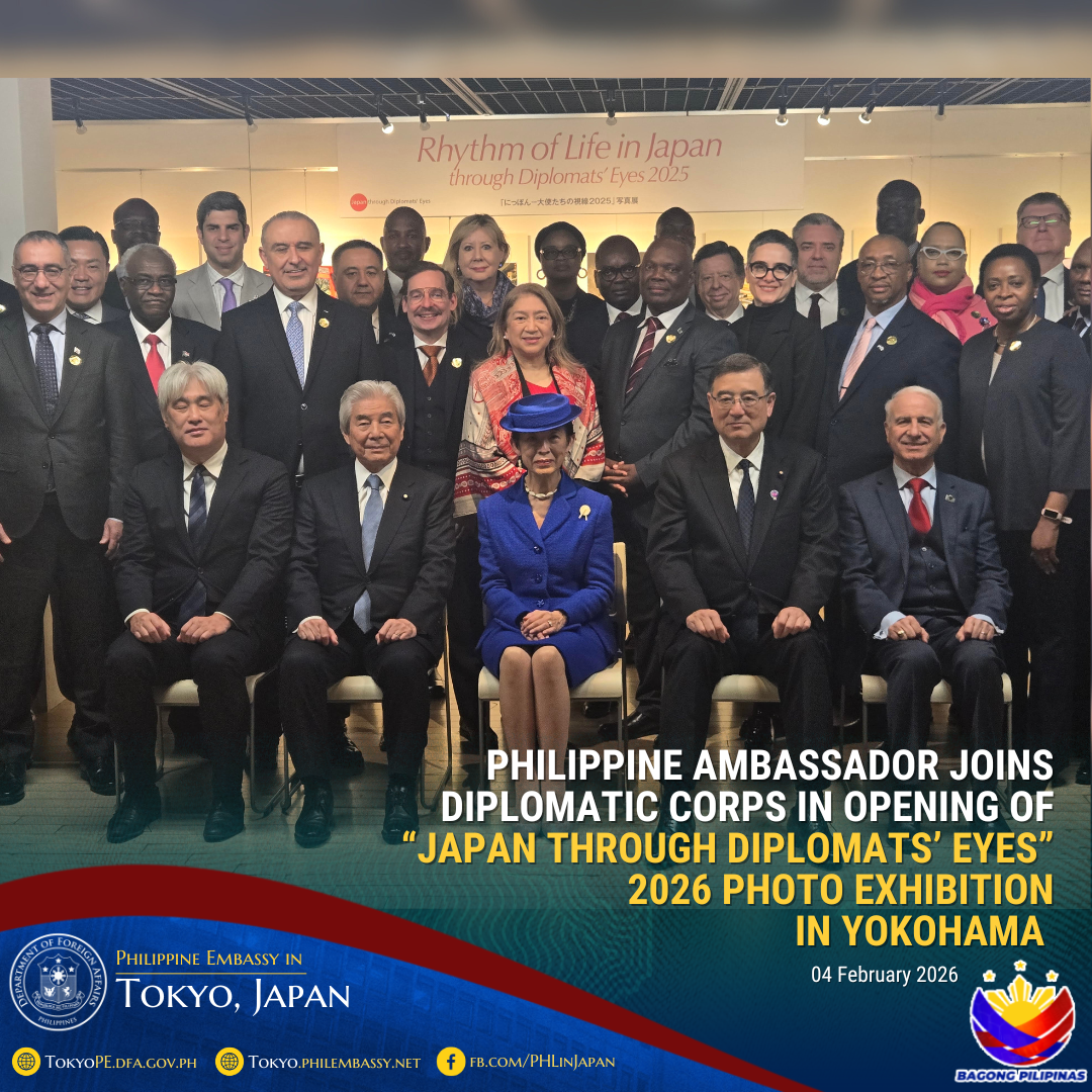 2026年2月12日横浜-2月4日ミレーン・ガルシア=アルバノ駐日フィリピン大使は、 在日外交団のメンバー、日本政府関係者、その他の来賓と共に、横浜赤レンガギャラリーにて開催された「大使たちの視線」写真展2026の開幕を祝うため一堂に会しました。同ギャラリーは、かつて税関として使用されていた歴史的建造物であり、現在は横浜市の文化拠点となっています。