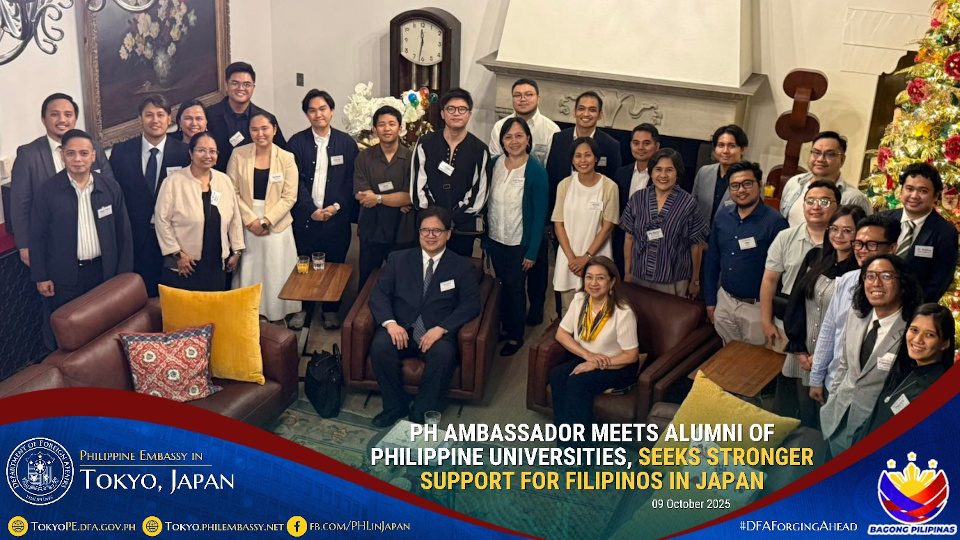 意見交換の中で、卒業生たちは、特に2026年にフィリピンと日本が国交正常化70周年を迎えるにあたり、在日フィリピン人コミュニティの利益となり、人的交流の深化を促進する取り組みを大使館と連携して実施することに強い関心を示しました。