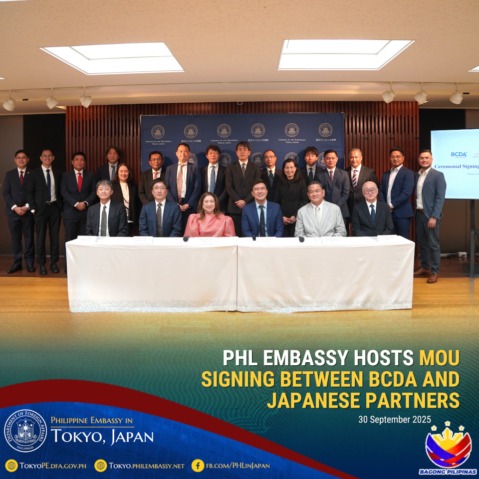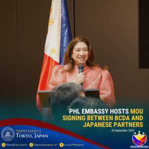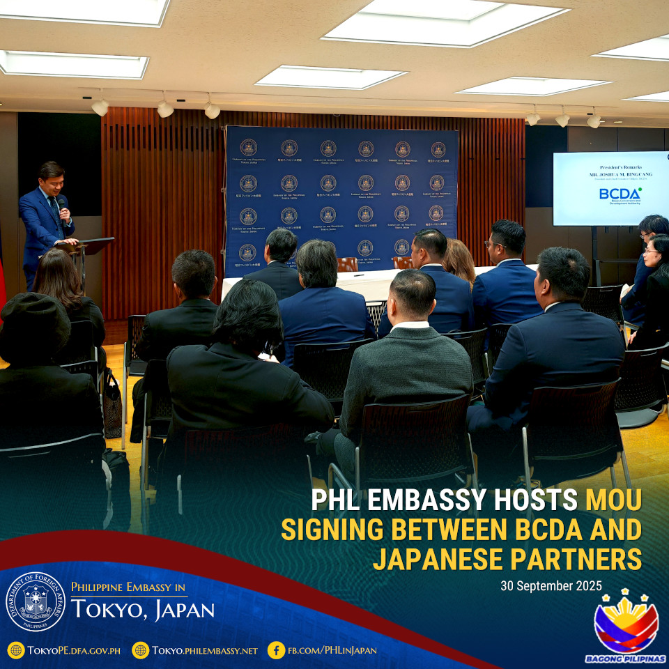 2025年10月6日東京-在日フィリピン大使館は9月30日、基地転換開発公社(BCDA)と日本のパートナー企業との間で3件の覚書(MOU)署名式を開催しました。これは、持続可能な開発、再生可能エネルギー、情報通信技術、廃棄物管理における協力推進に向けたフィリピンと日本の共通の取り組みを際立たせるものです。