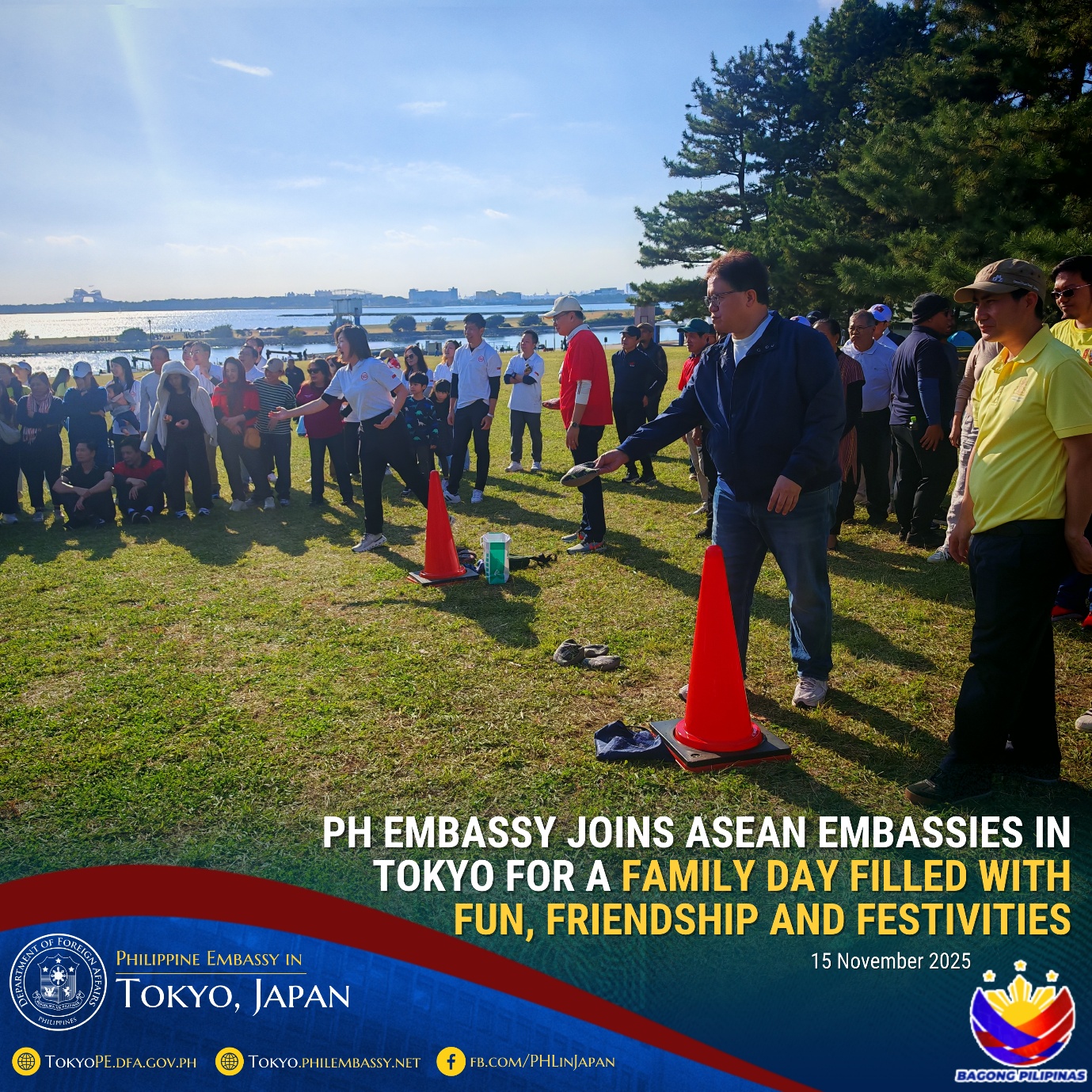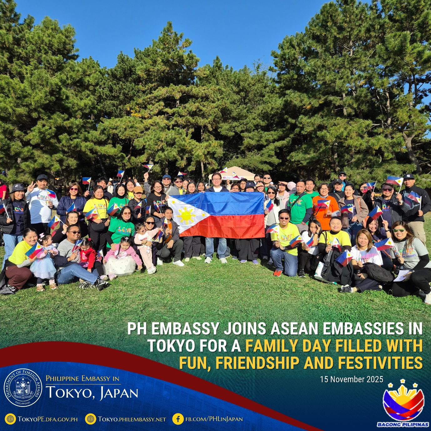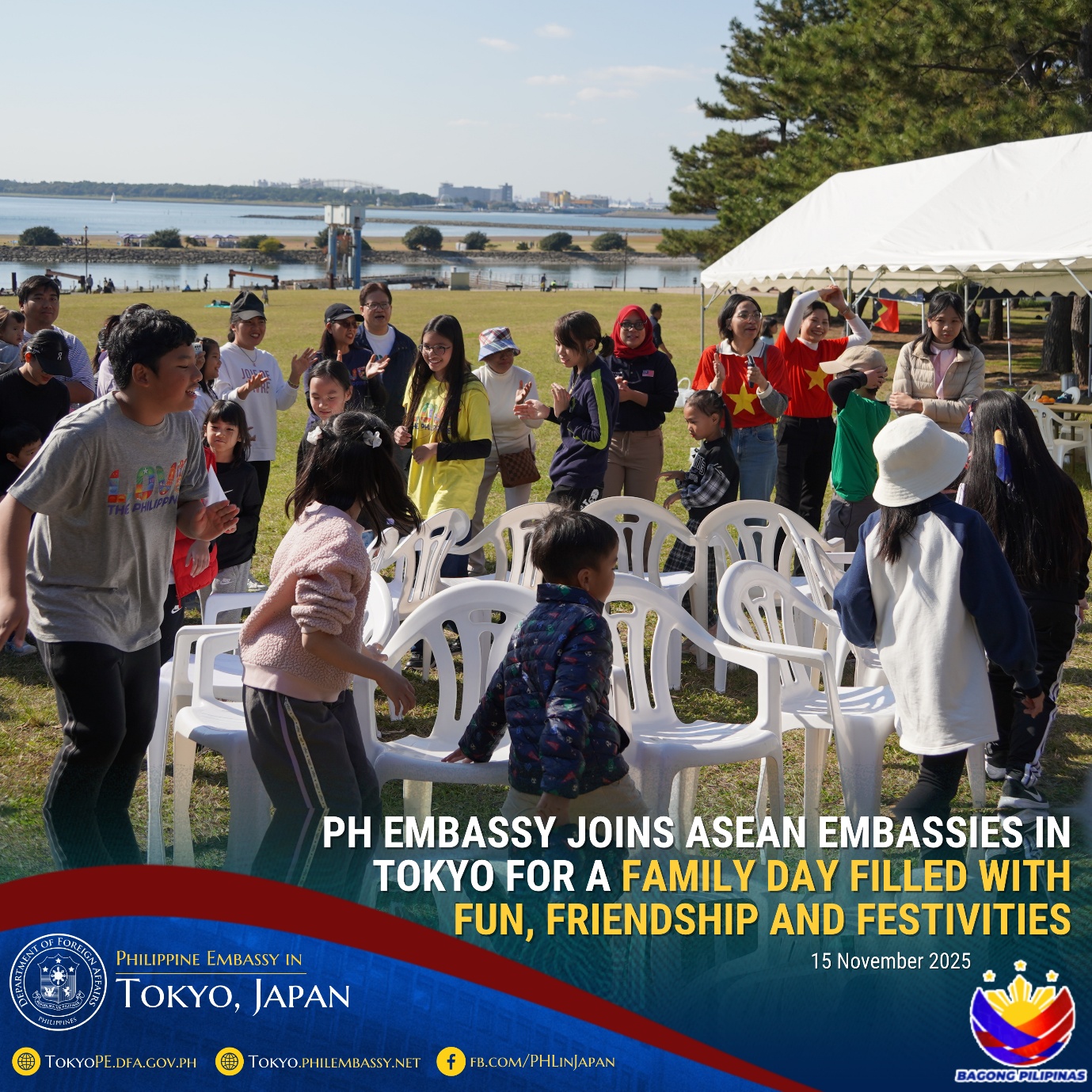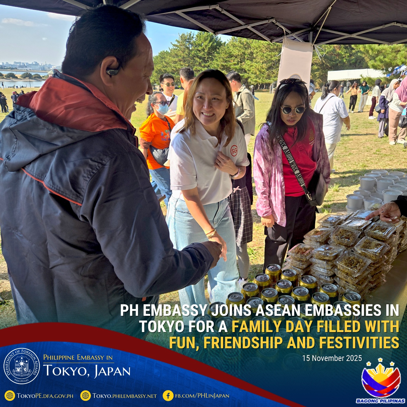 2025年11月17日東京-2025年11月15日、在京フィリピン大使館は、他のASEAN大使館とともに、江戸川区葛西臨海公園で開催された東京ASEAN委員会(ACT)ファミリーデーに参加しました。