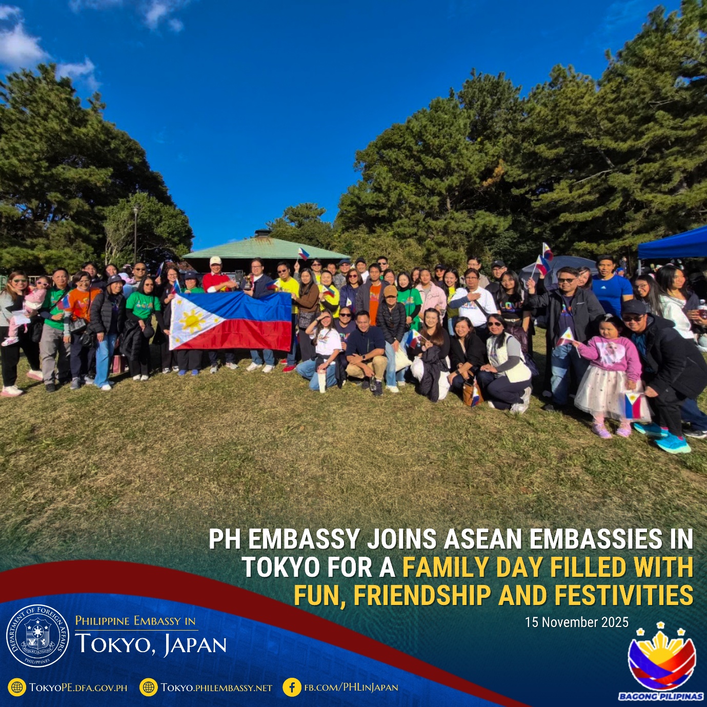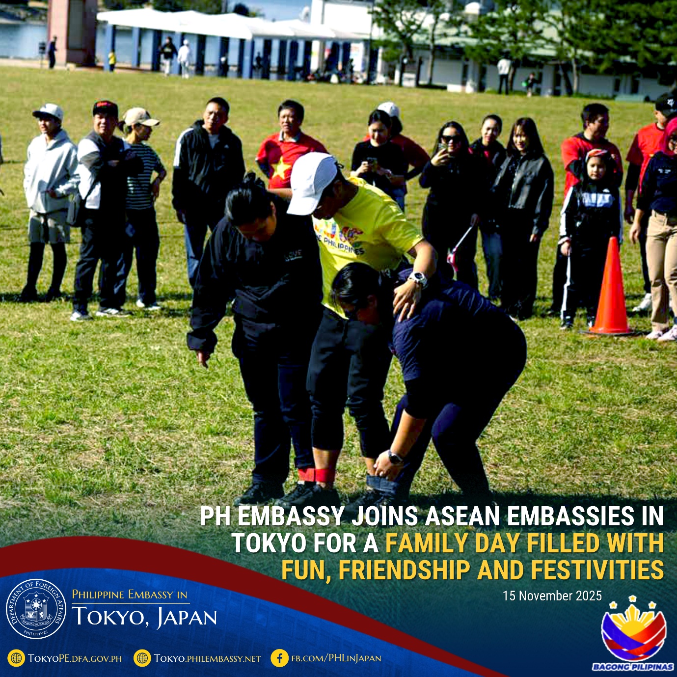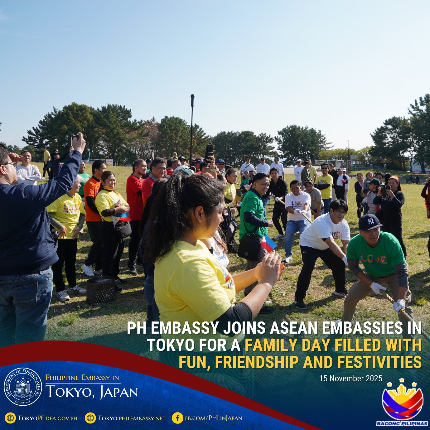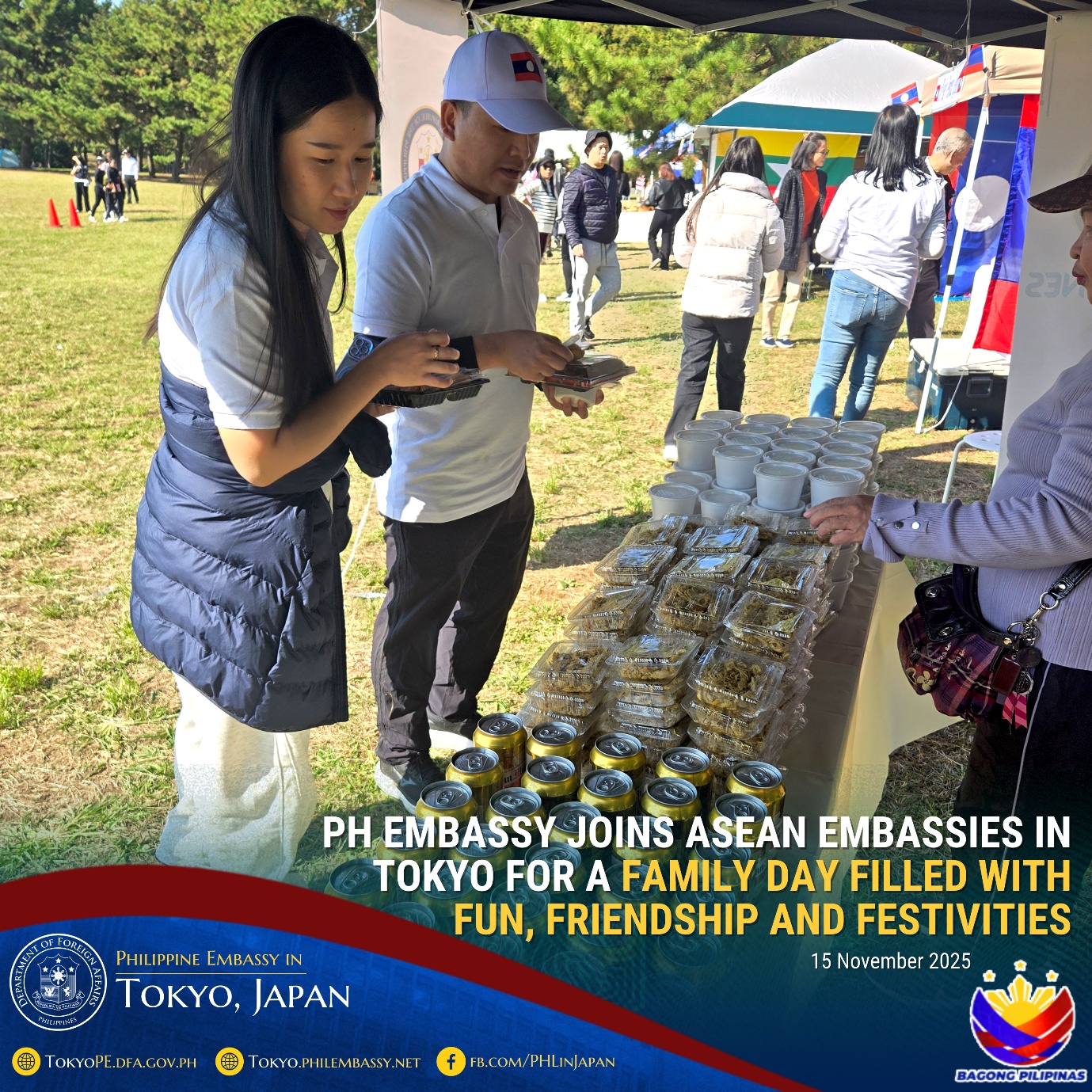 2025年11月17日東京-2025年11月15日、在京フィリピン大使館は、他のASEAN大使館とともに、江戸川区葛西臨海公園で開催された東京ASEAN委員会(ACT)ファミリーデーに参加しました。