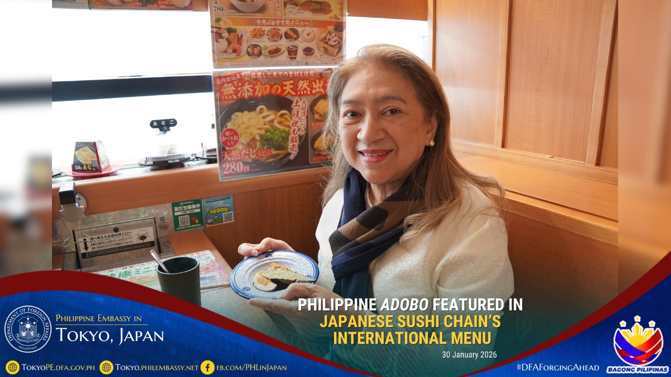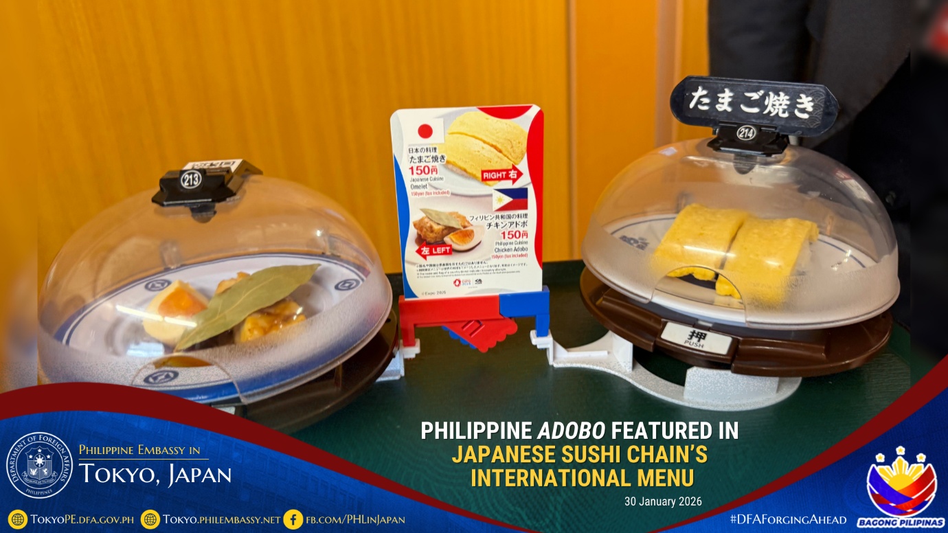 TOKYO, 05 February 2026 – In time for the 70th anniversary of the normalization of Philippines-Japan diplomatic relations in 2026, the Philippine adobo is currently featured for a limited time on the international menu of Kura Sushi, a one Japan’s most popular conveyor belt sushi restaurant chains in Japan.